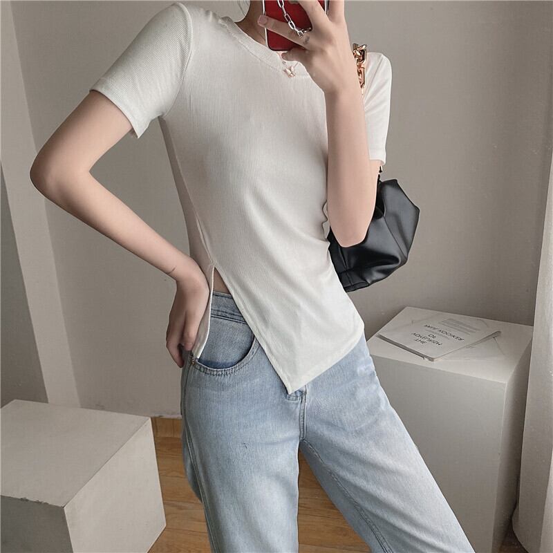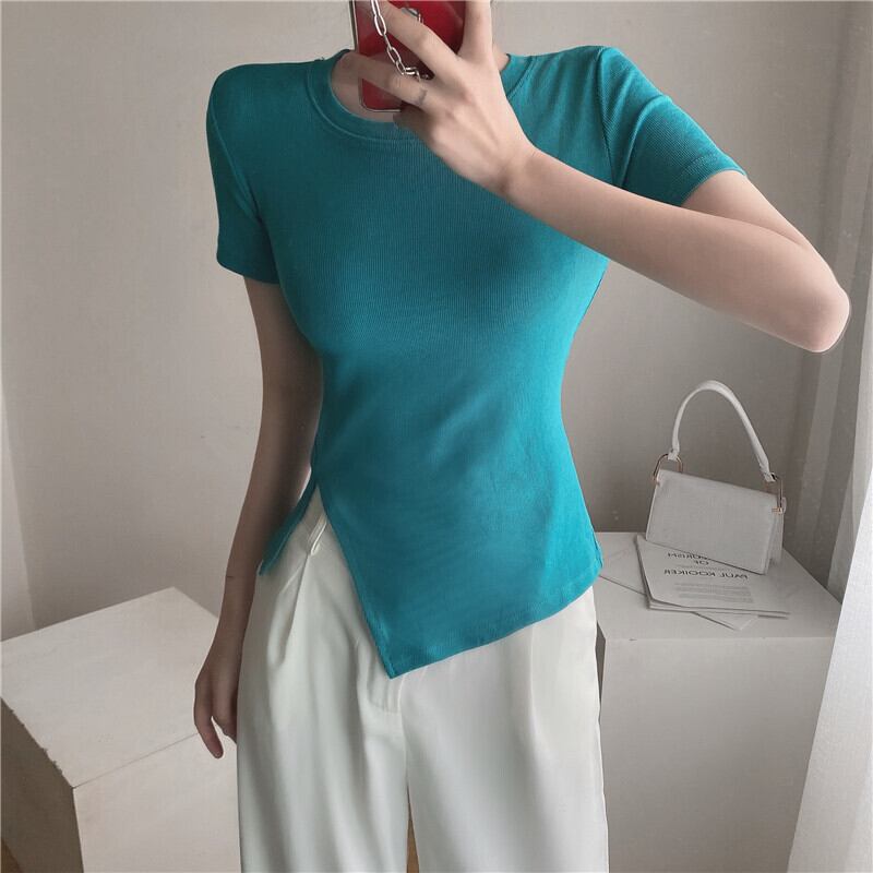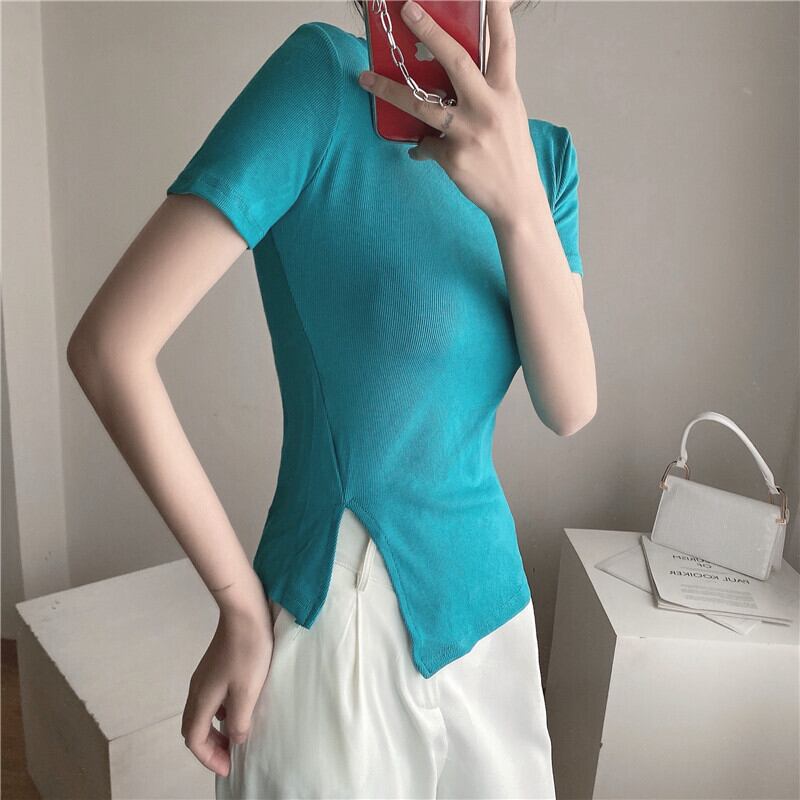 2021年痩身スプリットボトミングシャツ不規則なインナーボトミングトップス女性ファットシスタースリムアイスシルクセーター夏 サマー 夏物 TB2-10 TB2-1078504155945