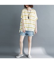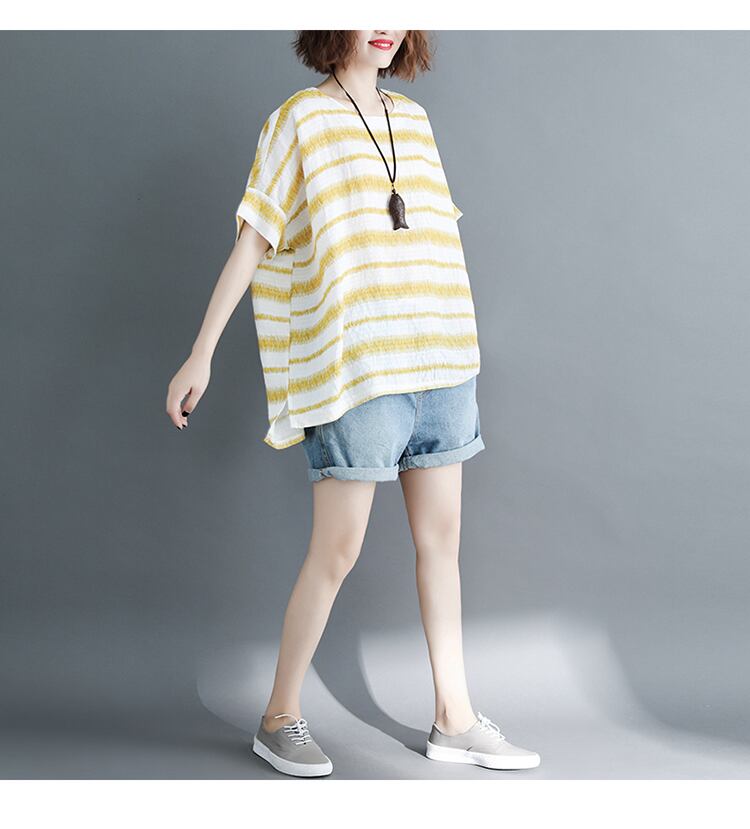 ストライプ半袖Tシャツ女性の2020年夏の新しいルーズ200キャティコットンとリネンシャツカジュアル年齢削減ボトミングシャツ サマー 夏物 TB2-8 TB2-882685751342