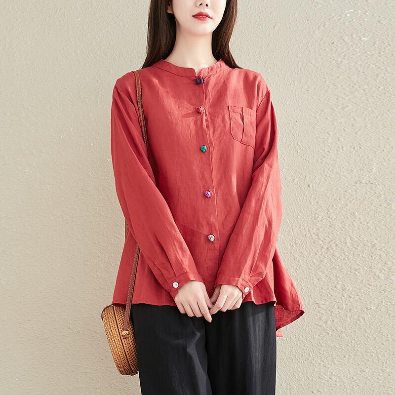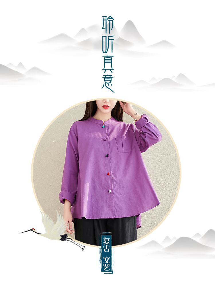 2021年春の新作コットンとリネンシャツの女性のルーズで薄いオリジナルデザインセンス長袖ディスクボタンカジュアルコットンとリネントップ ロング スプリング 春物 TB2-12 TB2-1229163565540