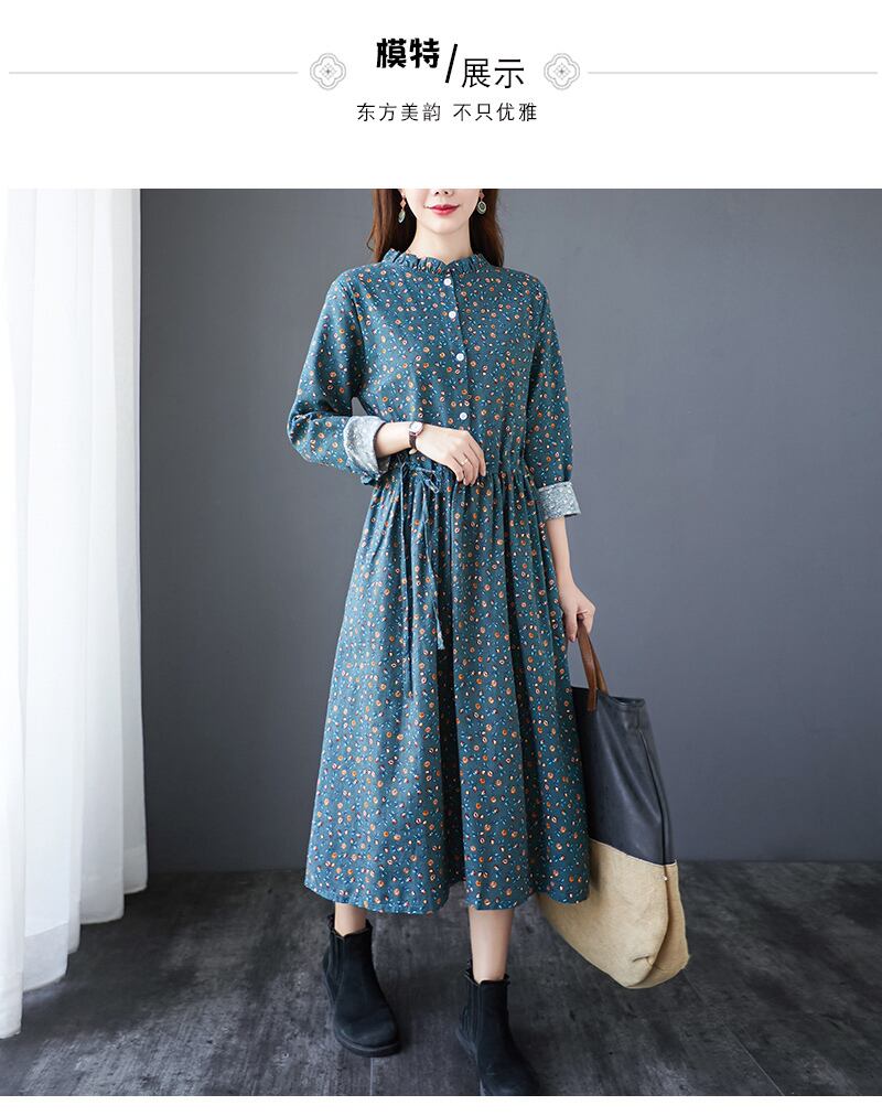 コットンとリネンの花柄の長袖ドレス女性の2021年春と秋の新しい気質年齢減少ウエストウエストミドル丈リネンスカート ロング スプリング 春物 オータム 秋物 TB2-12 TB2-1262823662848