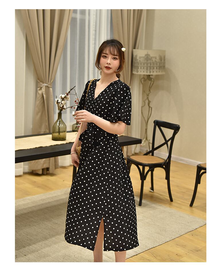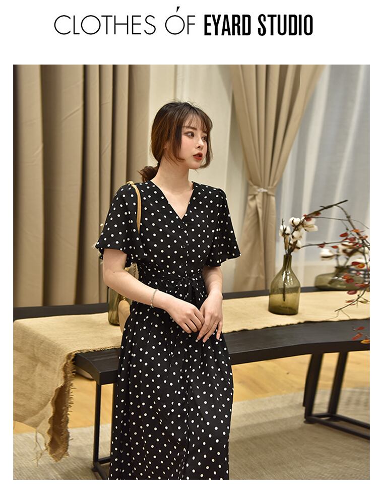 太った姉妹のレトロなウエストの半袖水玉ドレスの女性は薄くて年齢を減らし、腹、シフォンのロングスカート、プラスサイズのサマードレスを覆っていました 大きめサイズ 夏物 TB2-10 TB2-104406447643