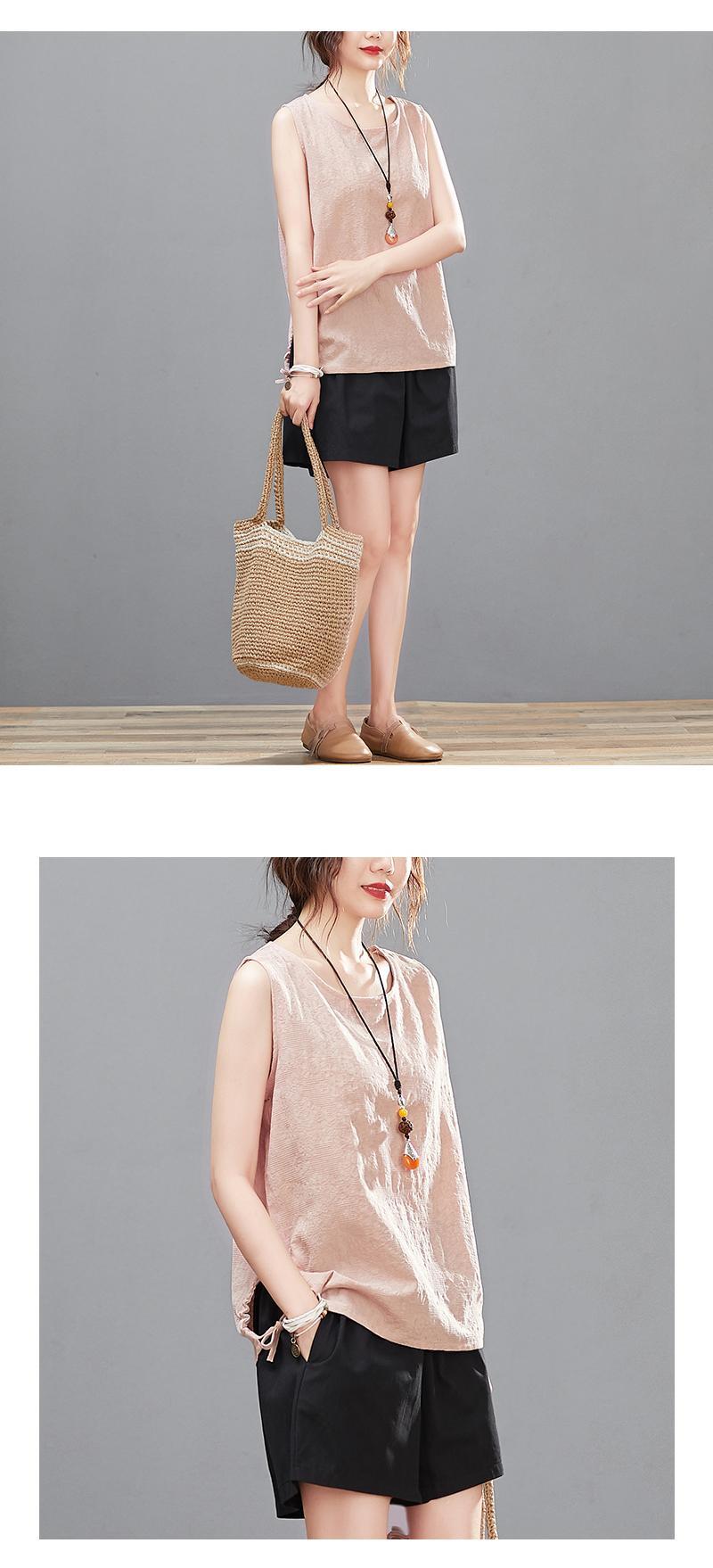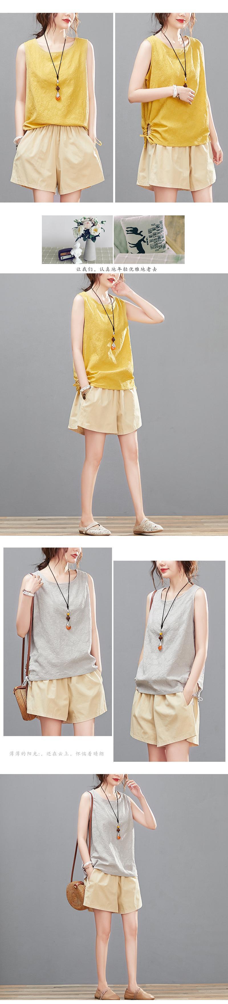 2021年夏のコットンジャカードノースリーブスリングワイドルーズブラウスレトロボトミングベストワイドレッグショーツスーツ女性 サマー 夏物 ブルマー ワイドパンツ TB2-12 TB2-122097178986