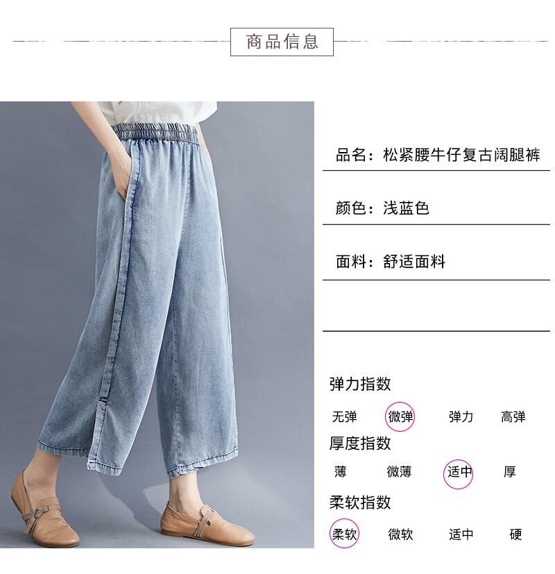 テンセルジーンズ女性の夏の文学とアートレトロな伸縮性のあるウエストは薄いドレープワイドレッグパンツは薄いクロップドパンツを分割しました エラスティック サマー 夏物 TB2-12 TB2-1268779427930