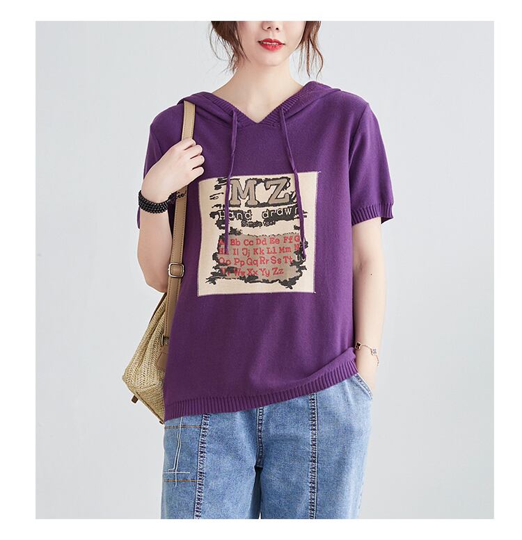 夏のルーズラージサイズ半袖フード付きプルオーバーセーター女性の痩身カジュアルカバー腹薄底シャツ潮 大きめサイズ サマー 夏物 TB2-8 TB2-828703497784
