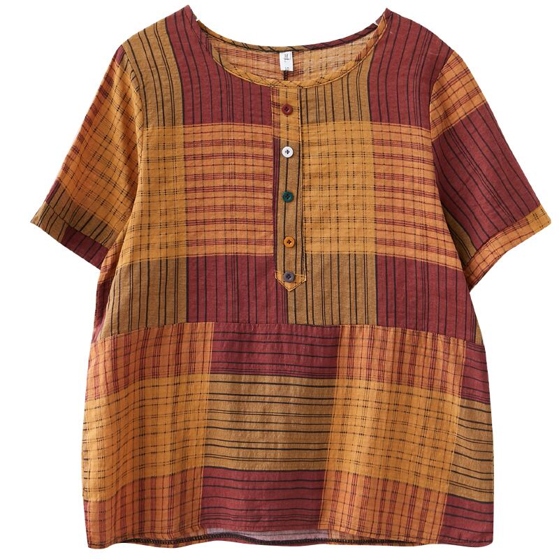 2021年夏のストライプコットンとリネン半袖レディースルーズトップリネンレディースTシャツ ショート ハーフスリーブ サマー 夏物 TB2-12 TB2-1240555937437