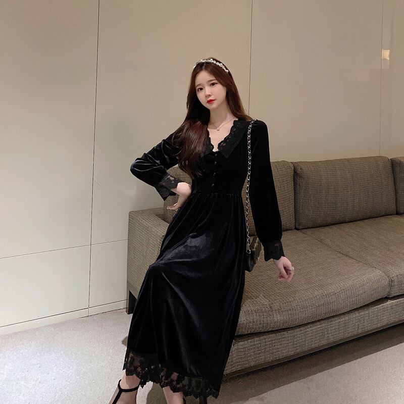 プラスサイズの女性のスーパーフェアリーヘップバーンベルベットドレス女性の年齢減少レトロなリトルブラックドレスは薄いフランスのロングスカート太った姉妹でした 大きめサイズ TB2-10 TB2-1013624668882