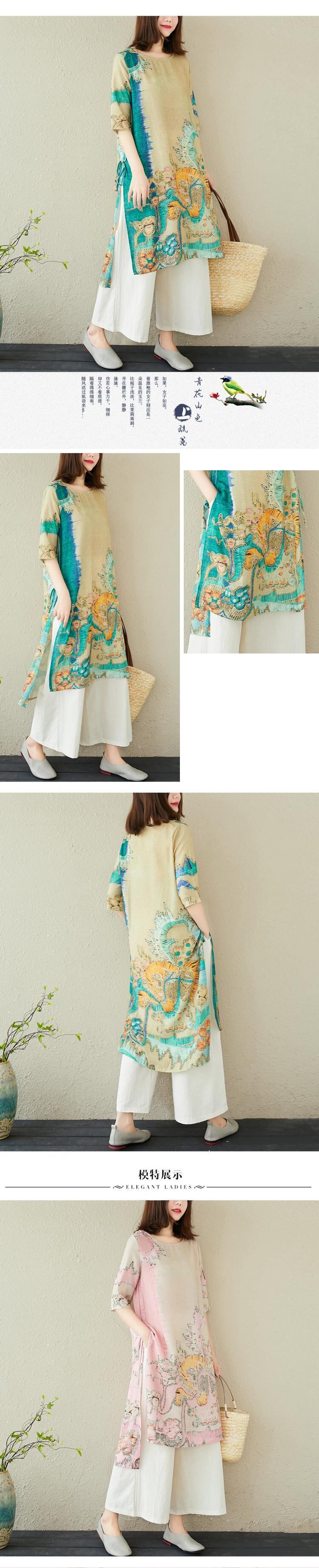 夏のエスニックスタイルのプリントラージサイズのドレスコットンとリネンのツーピーススーツレディースファットmm薄いワイドレッグパンツリネンスーツ 大きめサイズ サマー 夏物 TB2-12 TB2-1286111243283