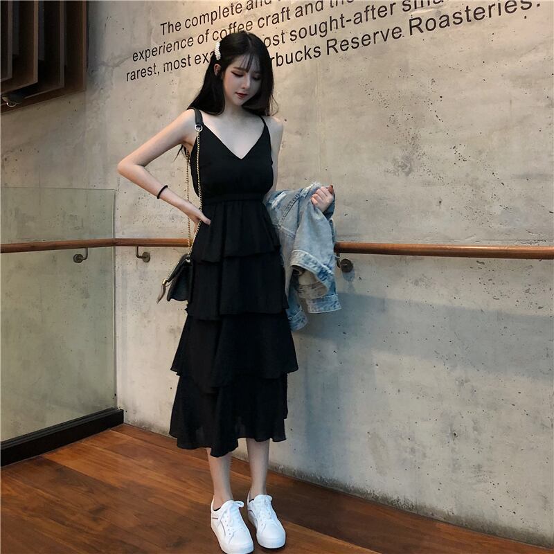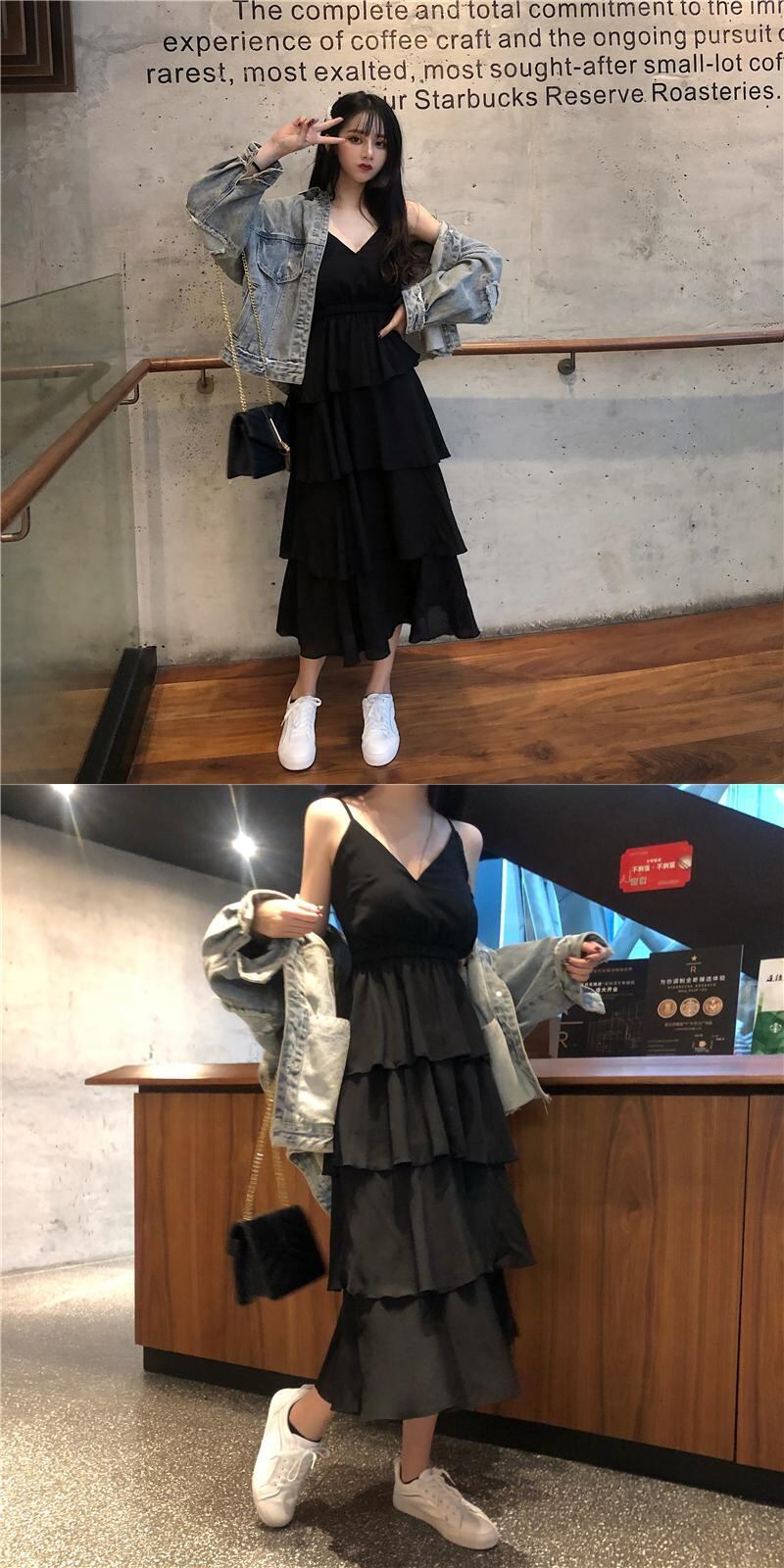 マッチングスーツデニムジャケット2021年夏ホワイトシフォンストラップワンピース女性Vネックボトミングケーキスカート サマー 夏物 TB2 TB226721417954