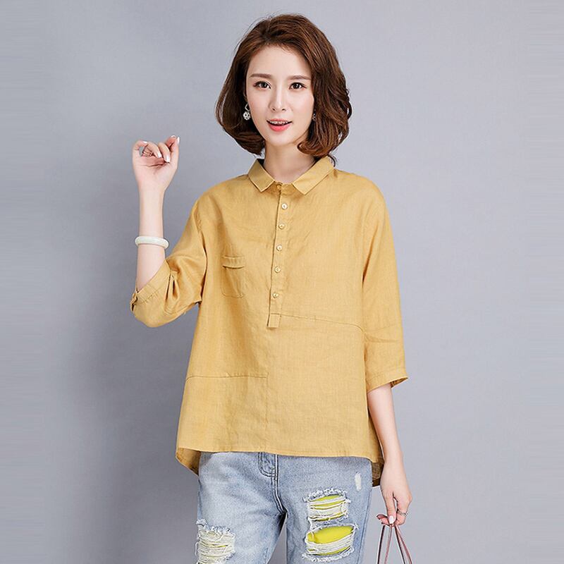 コットンとリネンシャツの女性の半袖サマードレス2020新しいスタイルのルーズラペルリネントップデザインのニッチシャツ 夏物 TB2-11 TB2-1116215648872