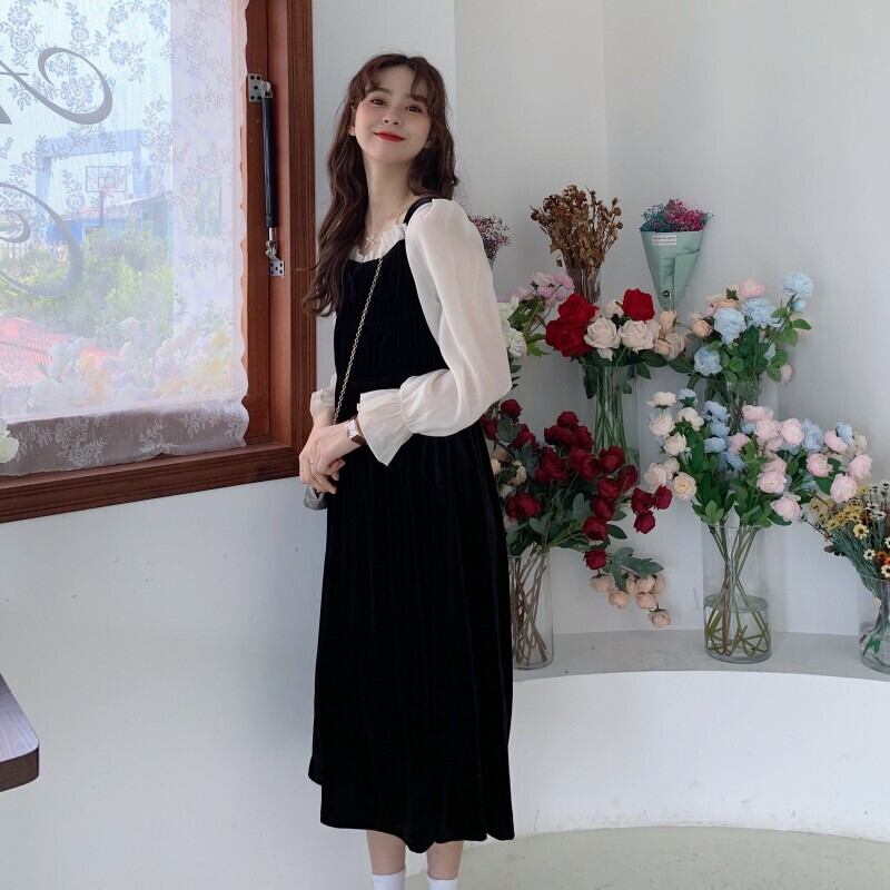 甘いフレンチオーバーザニーショートゴールドベルベットドレスフェアリースーパーフェアリーエストミドル丈デザインニッチな春のセンス 大人ガーリー スウィート キュート カジュアル スプリング 春物 TB2 TB283373178310