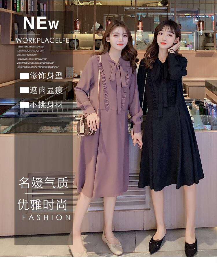 プラスサイズの春と秋ルーズレトロ年齢を減らすドレス女性の太った姉妹が腹を覆う長袖シフォンミドル丈スカートスーパーフェアリー ロング 大きめサイズ スプリング 春物 オータム 秋物 TB2-10 TB2-1062709183989