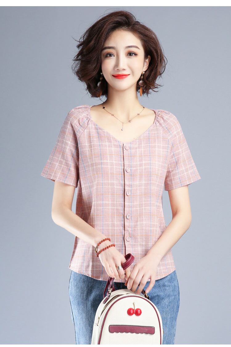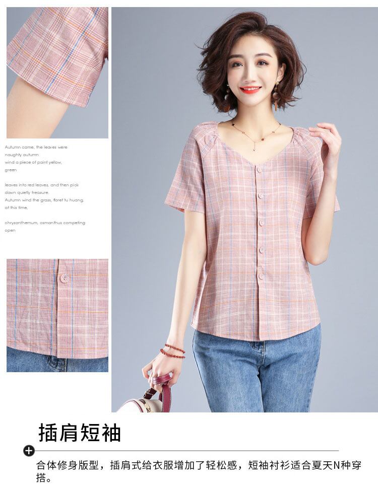 2020年新作サマーウィメンズトップスウィメンズシャツレトロウエスタンスタイルスモールシャツ半袖純綿Vネックカジュアルチェック柄シャツ コットン 夏物 ピュア TB2-11 TB2-1142631856499