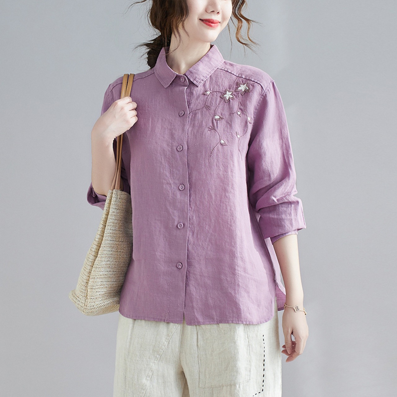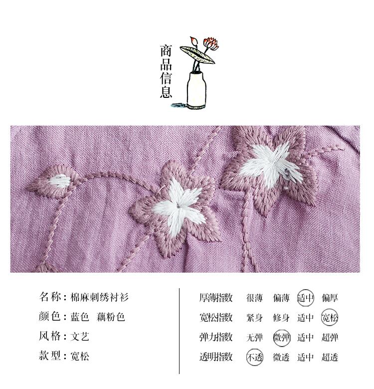 2021年春の新しいスタイルの文芸レトロコットンとリネンの刺繍シャツ女性の長袖シャツルーズで薄い気質トップ ロング レッド スプリング 春物 TB2-12 TB2-1224356449304