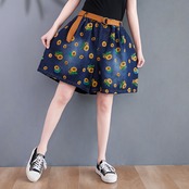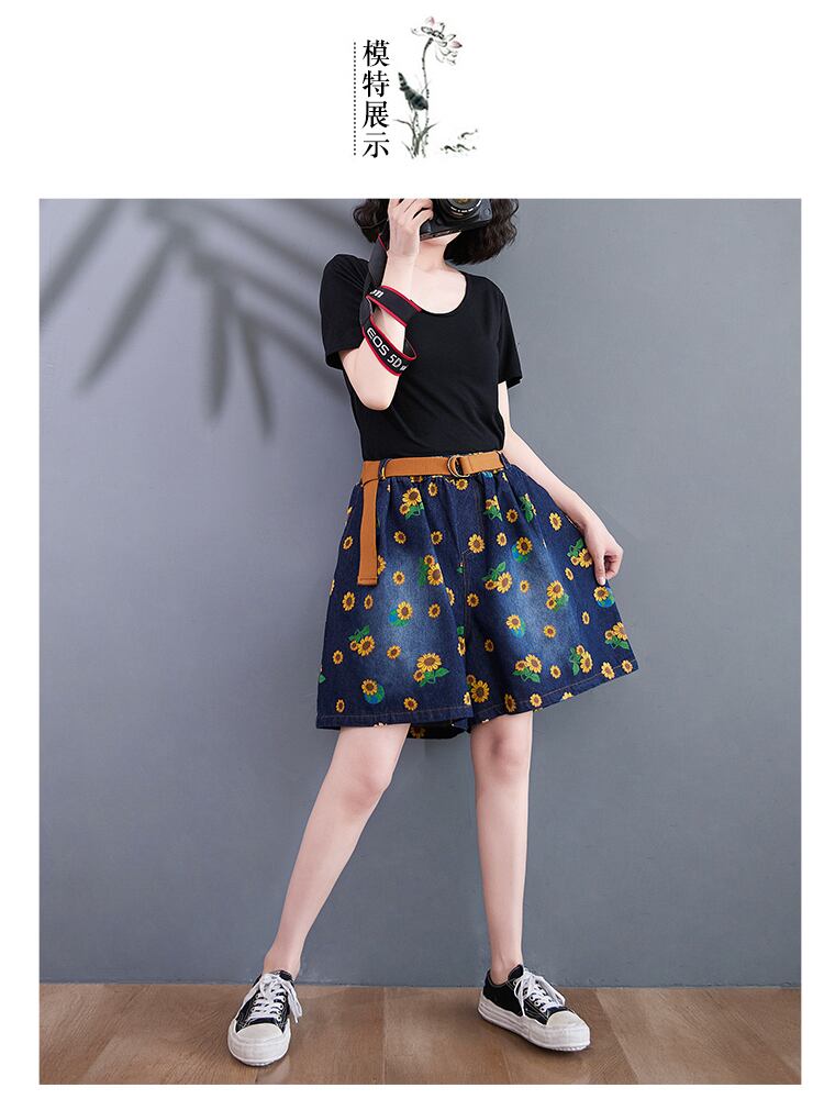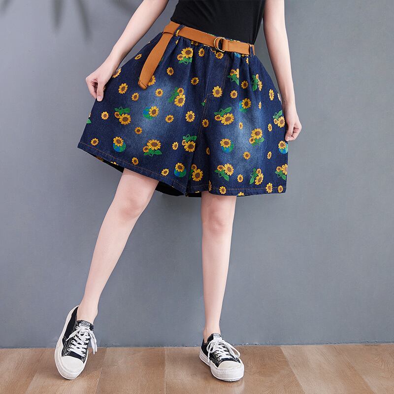 2021年夏のショートパンツ、カジュアルデニムプリント、ワイドレッグ、ルーズフィット、ウエスタンスタイルの5点パンツ、袴女性 サマー 夏物 ショーツ ブルマー TB2-12 TB2-1232213213230