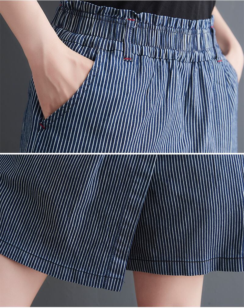 Xiaofeijia〜プラスサイズの女性の夏のレトロなワイルドストライプジーンズの女性の薄い不規則なルーズスカートパンツ 大きめサイズ サマー 夏物 TB2-8 TB2-854381630958