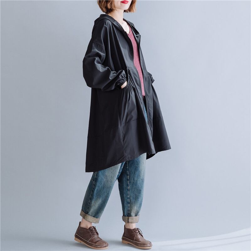 特大ブラックフード付きウインドブレーカージャケットメスファットシスターmmミディアム丈カーディガン200kg春新作2021年 スプリング 春物 TB2-243822444463