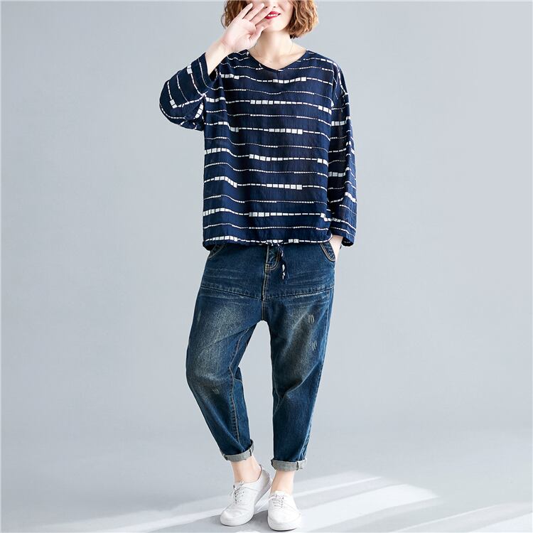 ファットシスタープラスサイズTシャツレディース2021年春スタイル、ルーズ、シン、年齢を減らすストライプの長袖オールマッチトップ ロング 大きめサイズ スプリング 春物 TB2-289565332853