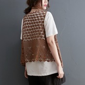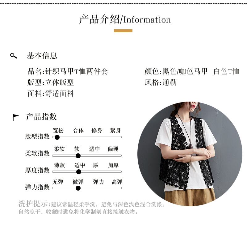 2021年夏の洋風スーツの女性文学と芸術の大型中空レースベスト+半袖Tシャツトップとツーピース 大きめサイズ サマー 夏物 TB2-12 TB2-1264440380860