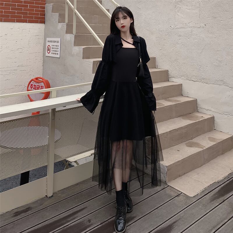 2021年春夏新作スーパーフェアリースリングリトルブラックドレスフレンチスタイルミートスーツスカートラージサイズシャツ気質ドレス 大きめサイズ スプリング 春物 サマー 夏物 TB2-10 TB2-1064454106867