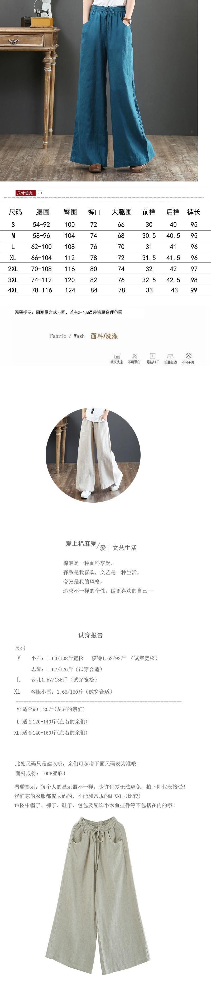2021年夏の文学とアートラージサイズのコットンとリネンのワイドレッグパンツレディースルーズハイウエストモッピングパンツリネンカジュアルパンツストレートパンツ 大きめサイズ サマー 夏物 TB2-12 TB2-1258338691114