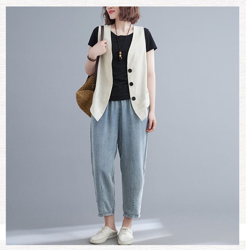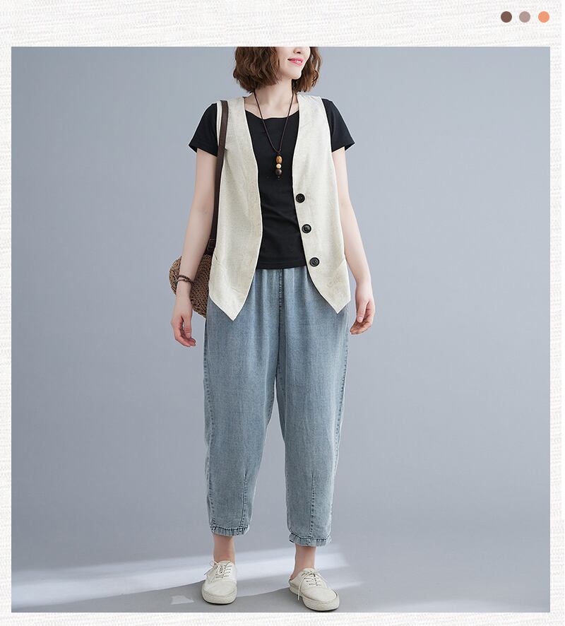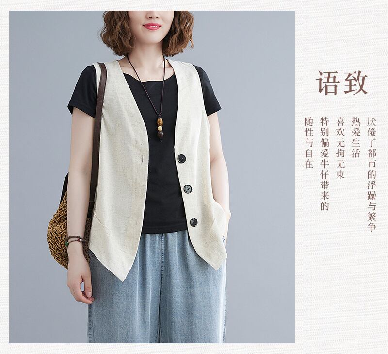 文学と芸術レトロな綿とリネンのベスト女性の夏のルーズラージサイズアウタースモールベスト無地カジュアルノースリーブベストトップ コットン 大きめサイズ サマー 夏物 ソリッドカラー TB2-12 TB2-1283696437541