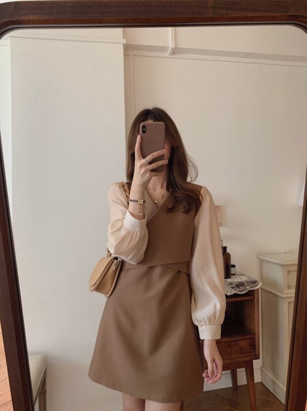 ファットシスターVネックウエスト気質ベーススカートラージサイズヘップバーンスカートは薄くてカバークロッチドレス200kgプラスサイズ春 大きめサイズ スプリング 春物 TB2-10 TB2-1046587327798