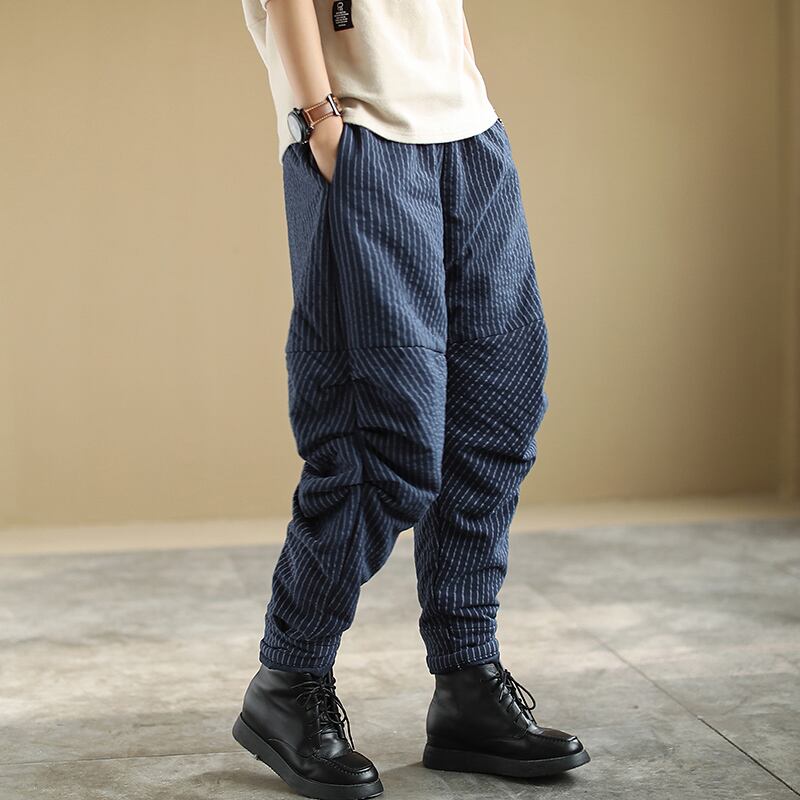 冬のレトロな文芸キルティング厚手のストライプカジュアルパンツ暖かく、綿のズボン弾性ウエスト大根パンツブルマ コットン エラスティック 伸縮 ウィンター 冬物 ショーツ ブルマー TB2-11 TB2-1182608716547