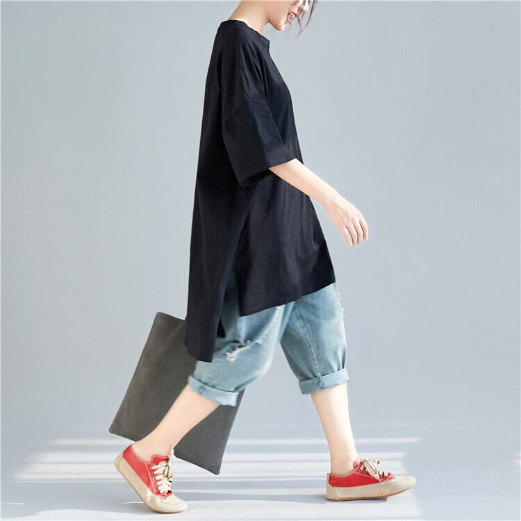 ラージサイズの女性用Tシャツファットシスターサマードレス2020新しいウエスタンスタイルルーズワイルドオールマッチ年齢削減ミドルとロングブラックトップ 大きめサイズ 夏物 TB2-21038401689
