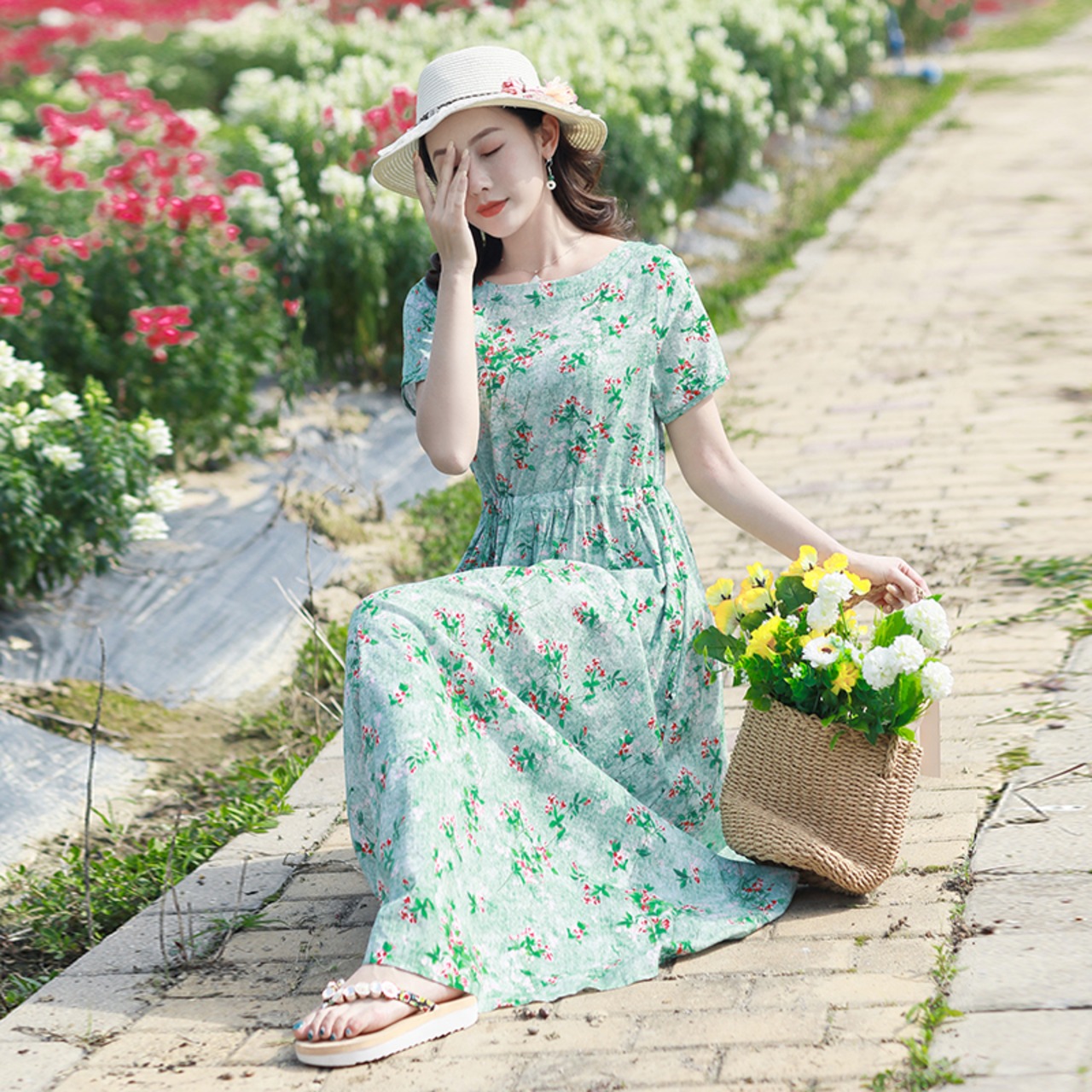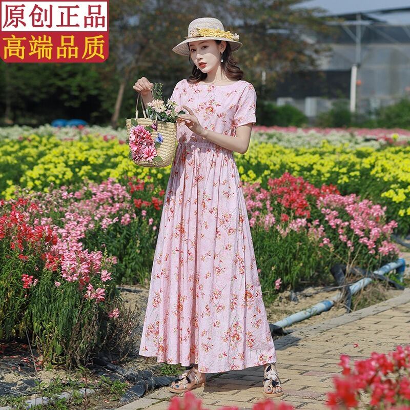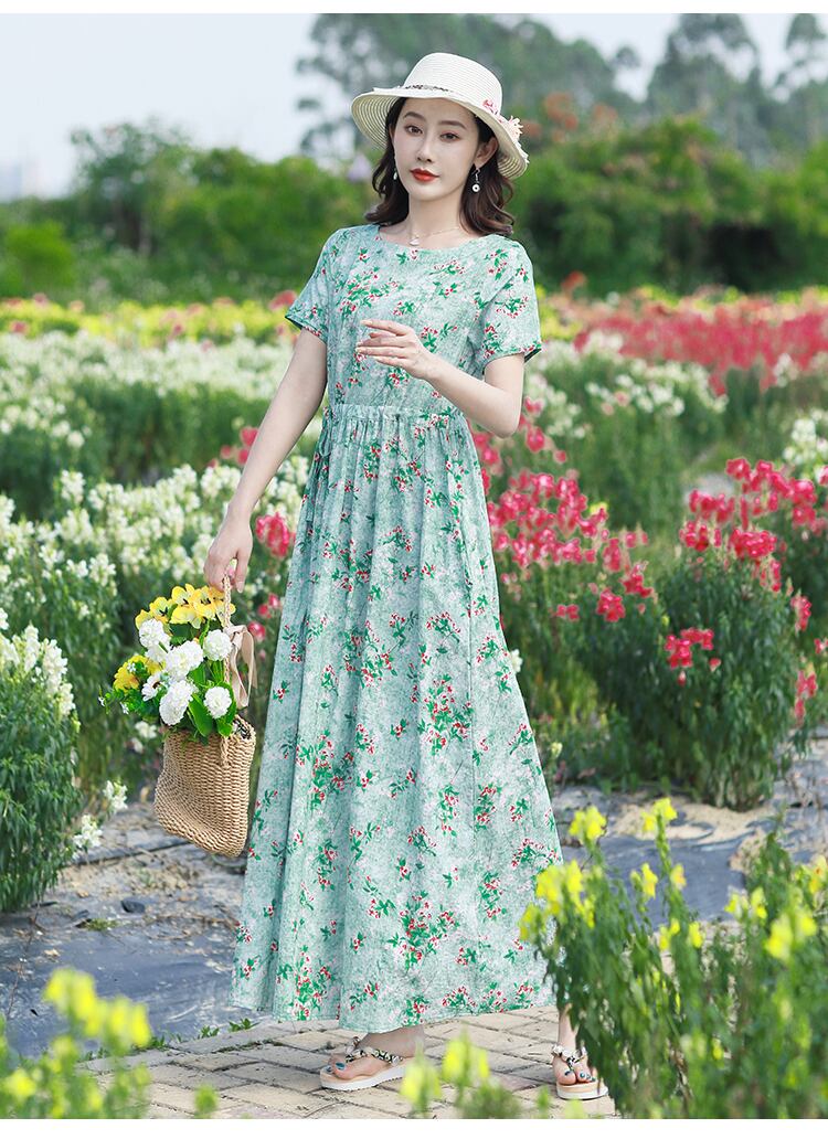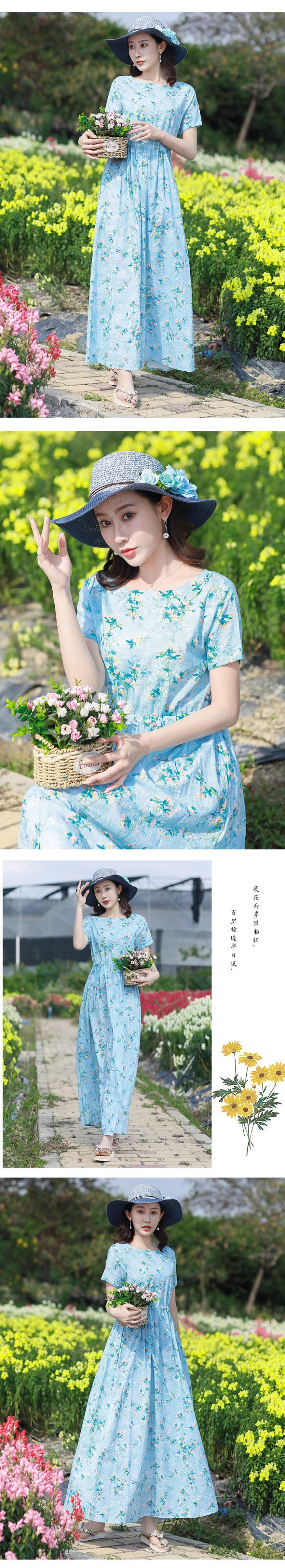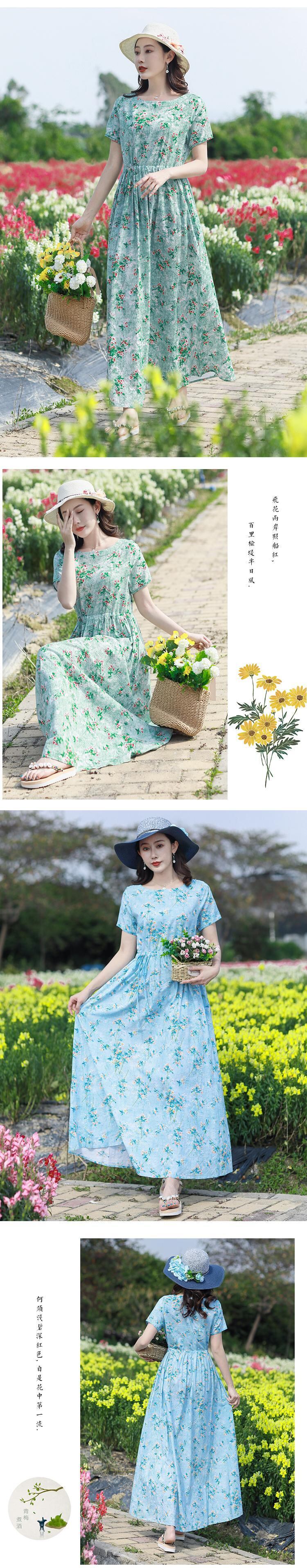 2021年夏の新しいスタイルのエスニックスタイルの大きなサイズの印刷文学とアートウエストウエストスリムで快適な長い大きなスイングドレスの女性 ロング 大きめサイズ サマー 夏物 TB2-12 TB2-121889672837