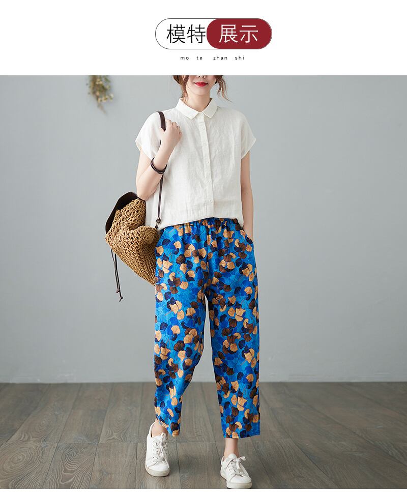 プリントコットンとリネンパンツの女性2021年新しいレトロな文学ハーレムパンツルーズで薄い9ポイントカジュアルパンツ夏 サマー 夏物 TB2-12 TB2-1286028576456