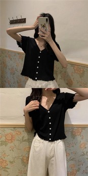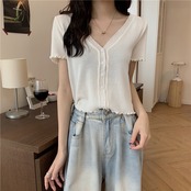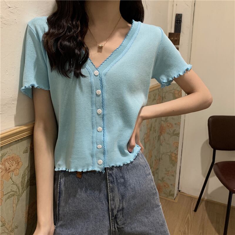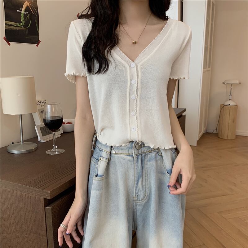 キクラゲのVネックニットカーディガン、薄手の女性用半袖半袖サマーbmトップス、ショートジャケット 夏物 TB2 TB226680473735