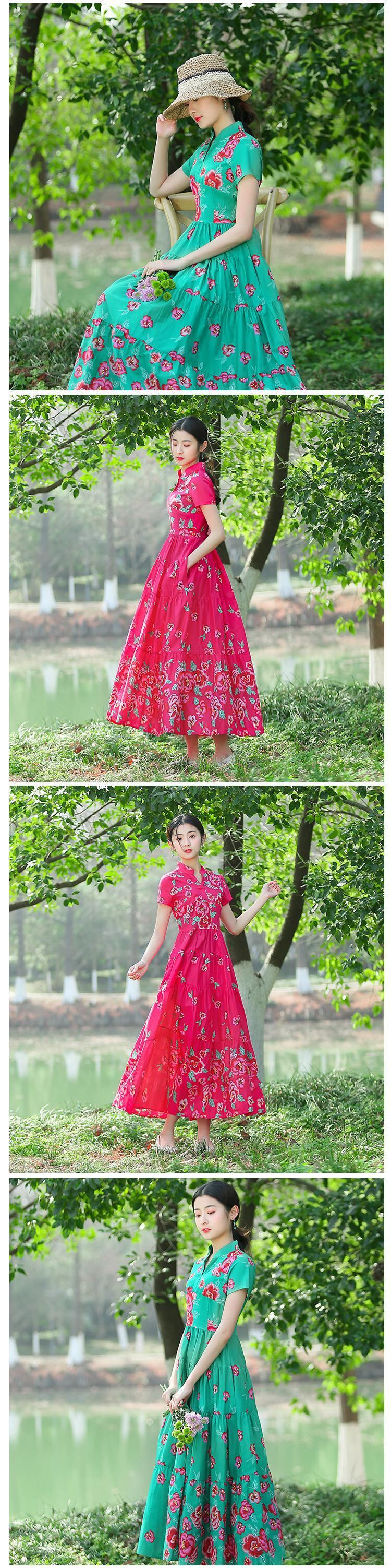2021年夏の新しいレトロなエスニックスタイルのコットンとリネンのプリントプラスサイズの婦人服ウエストスリミングホリデーステッチケーキスカート 大きめサイズ サマー 夏物 TB2-12 TB2-1268376637868