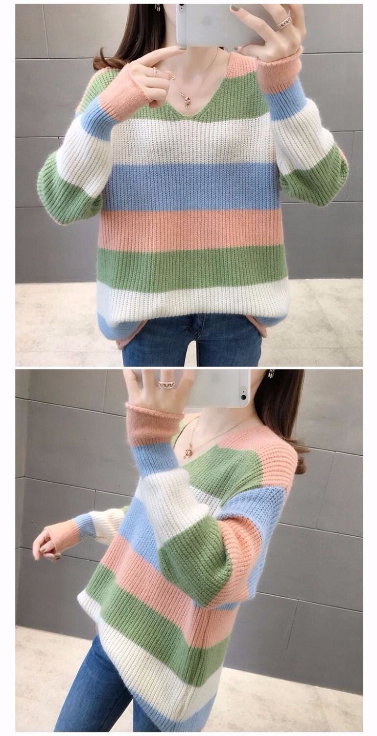 非常に妖精のセータールースウィミン怠惰な2020年秋Vネックストライプオールマッチプルオーバーセーターの新バージョン オータム 秋物 TB2-5 TB2-575543323946