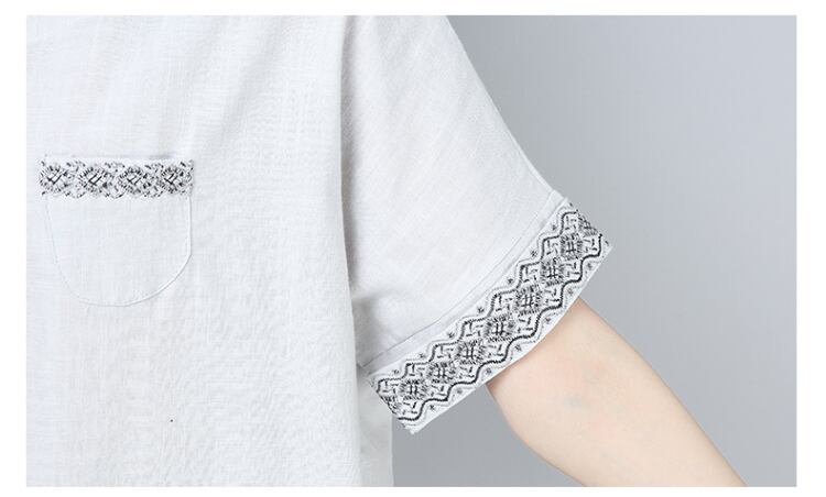 2021年コットンとリネンの刺繍半袖Tシャツレディースサマーニューワイルドラウンドネックルーズカジュアルレディーストップ 夏物 Oネック TB2-12 TB2-124438080891