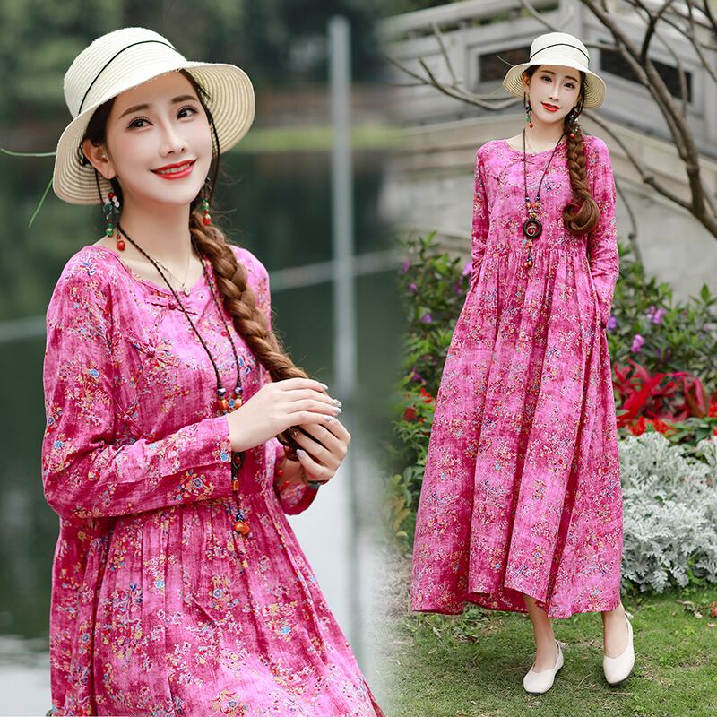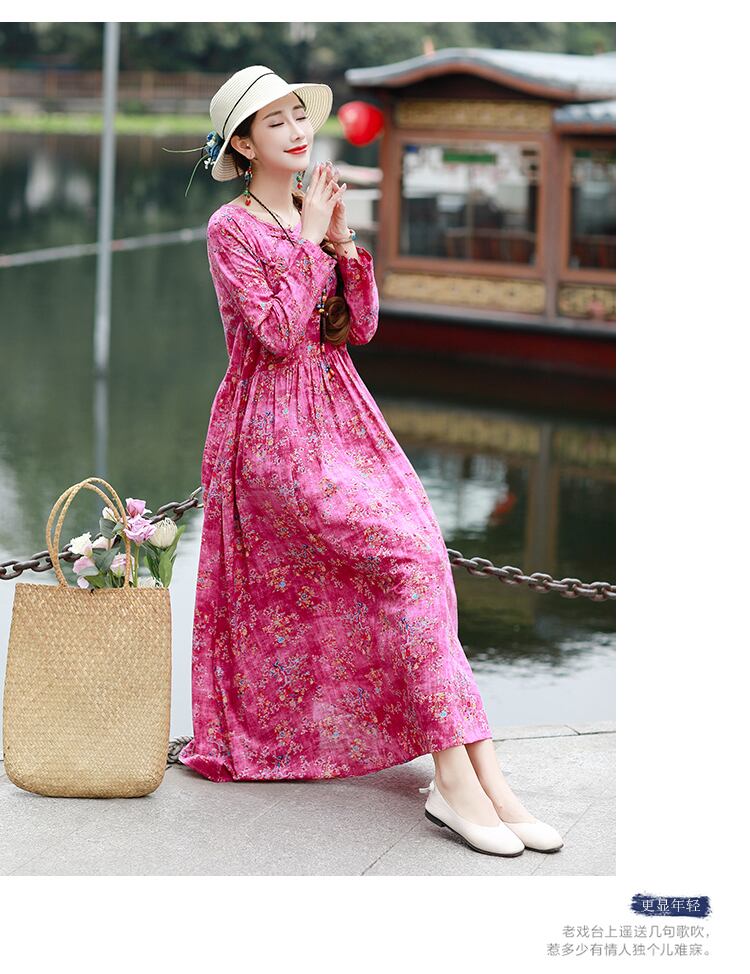 2021年春の新しい文体スタイルのレトロなディスクバックルフローラルプラスサイズの女性の春の外出ファッションカジュアルロングドレス 大きめサイズ スプリング 春物 花柄 TB2-12 TB2-1295622754697