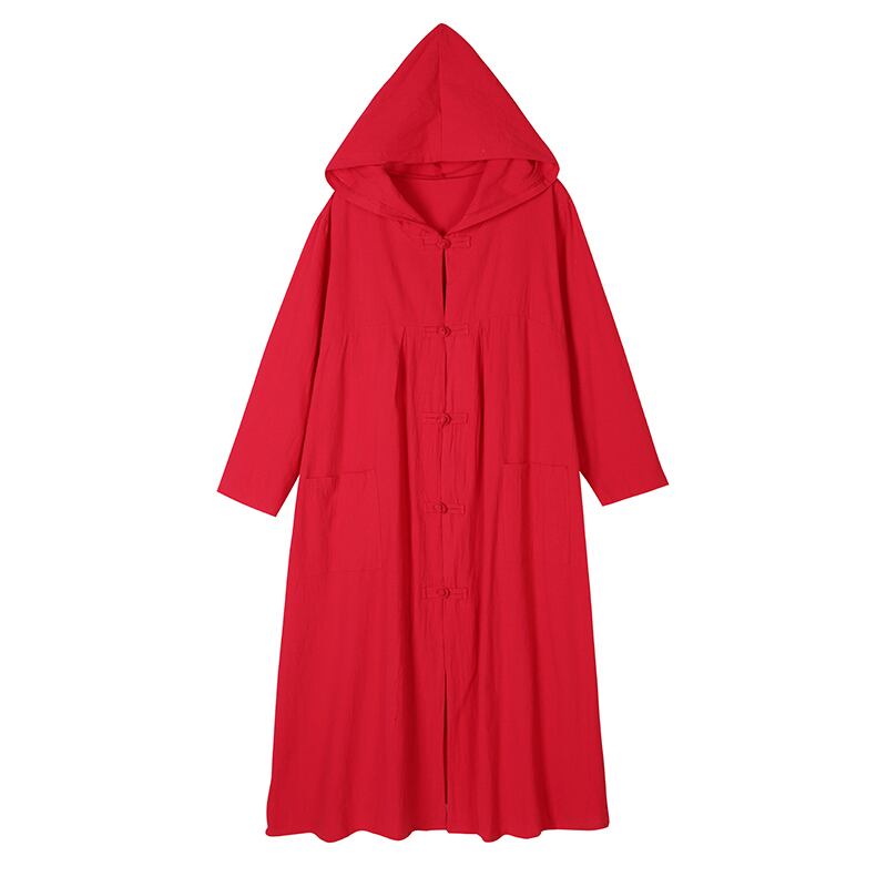 2021年春の新しいエスニックスタイルのコットンとリネンの無地のルーズラージサイズのロングフード付きマントスタイルの文学ショールジャケット 大きめサイズ スプリング 春物 ソリッドカラー TB2-12 TB2-1215166910972