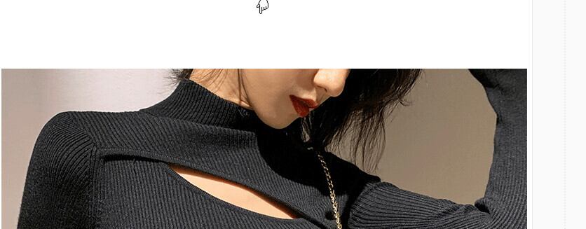 プラスサイズの女性用黒ニットボトミングシャツ、女性のセクシーなくり抜かれたカーディガン、セータートップ、太った姉妹 ブラック 大きめサイズ TB2-10 TB2-1060160557400