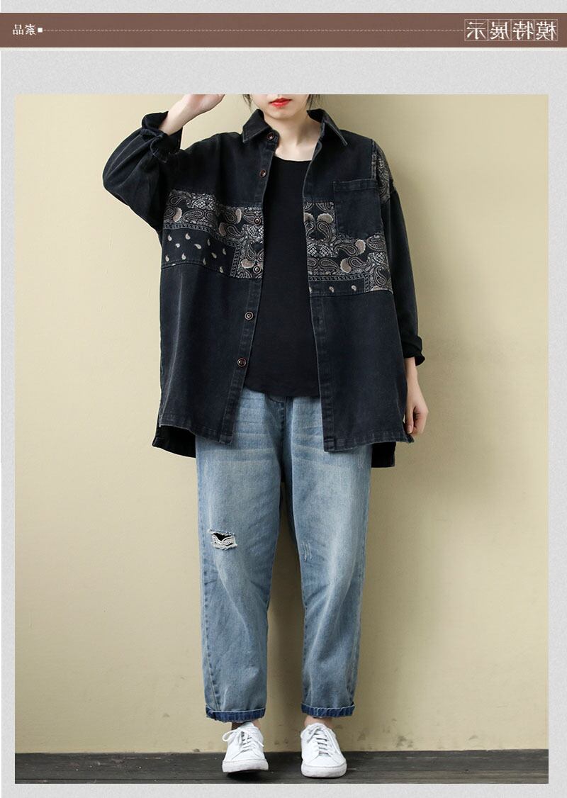2020年春の新作ラペルステッチプリントオールマッチカジュアルデニムジャケットレトロルーズリテラリー長袖シャツ ロング スプリング 春物 TB2-11 TB2-1136804374184