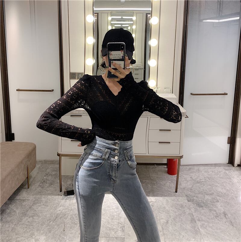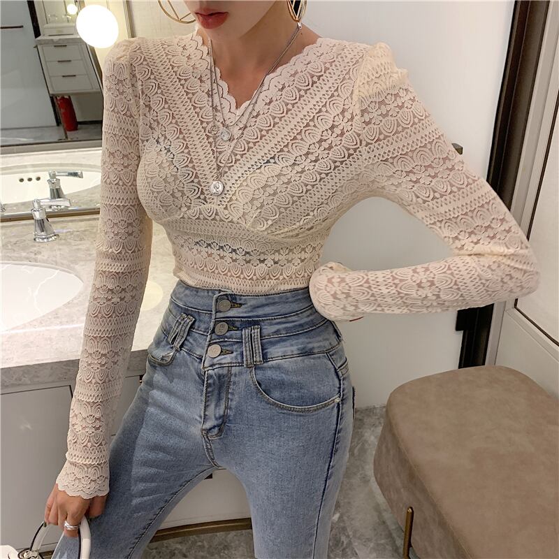 プラスサイズの女性の太った姉妹mm年齢を減らすセクシーなVネックブラウス女性の洋風レトロ長袖レースボトミングシャツ200kg ロング 大きめサイズ TB2-10 TB2-1082702614718