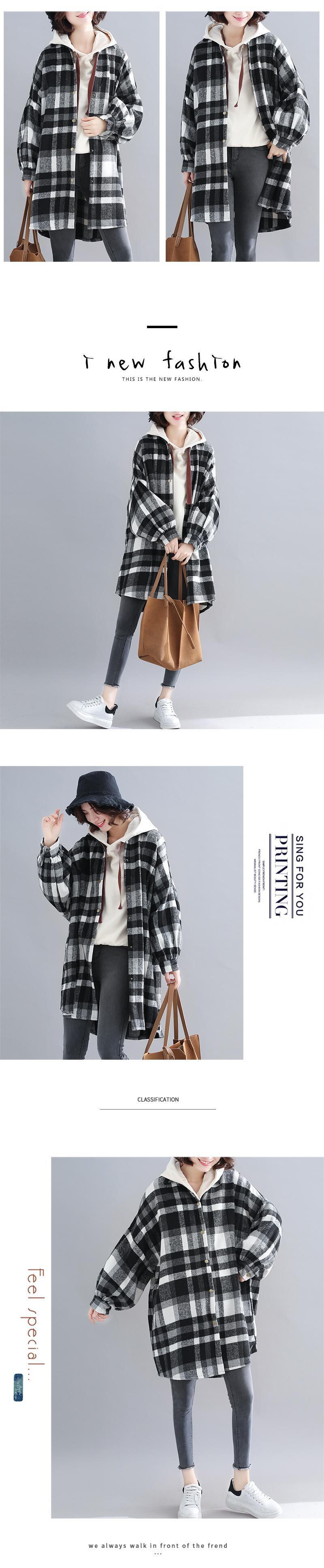 チェック柄ウールコートレディース2021年春新バージョンのラージサイズミドル丈ルーズ人気気質ウールコート 大きめサイズ スプリング 春物 TB2-8 TB2-853579284751