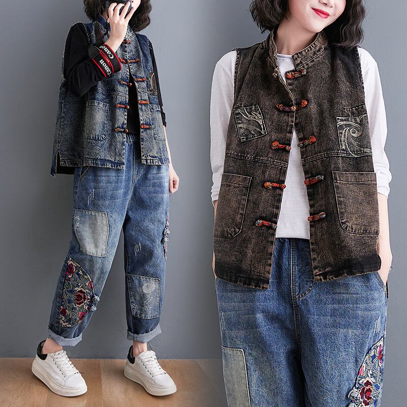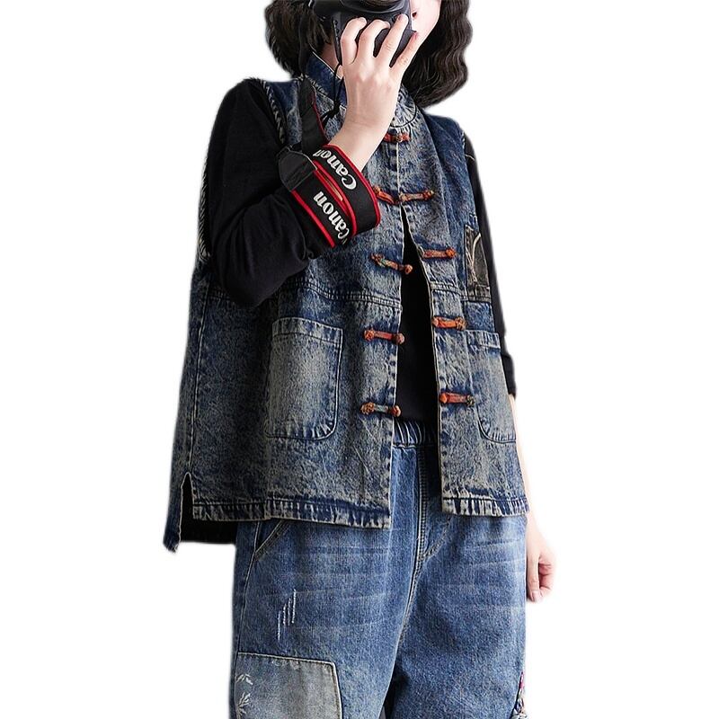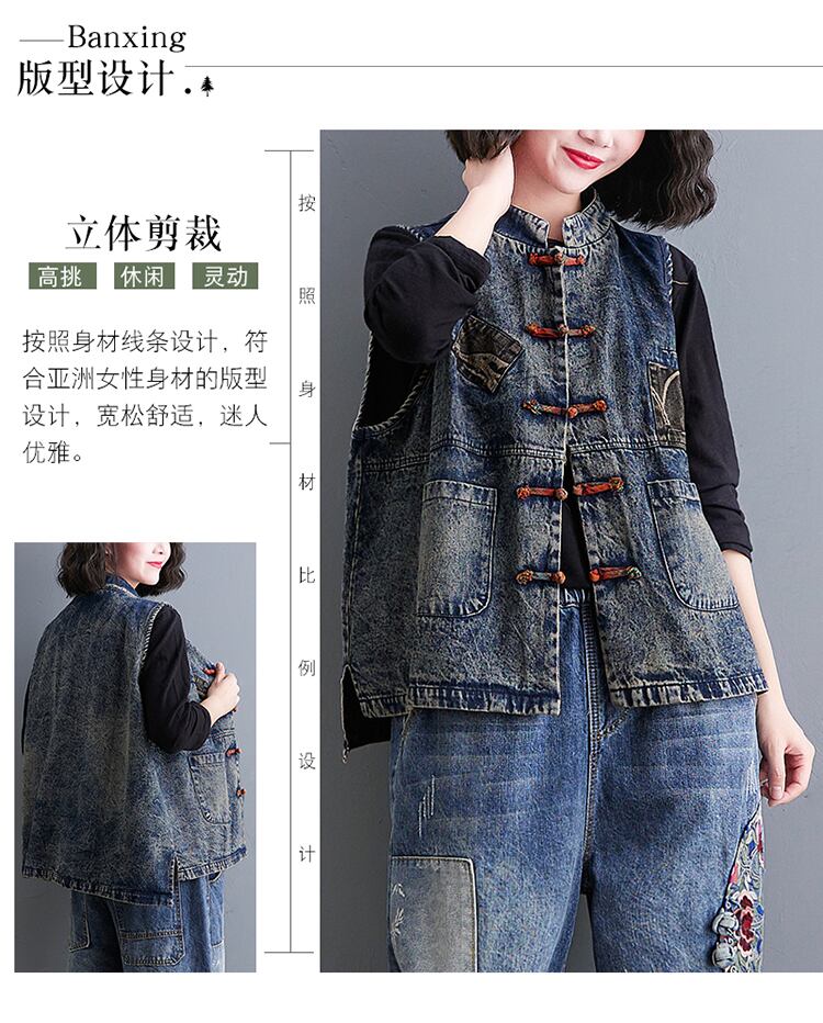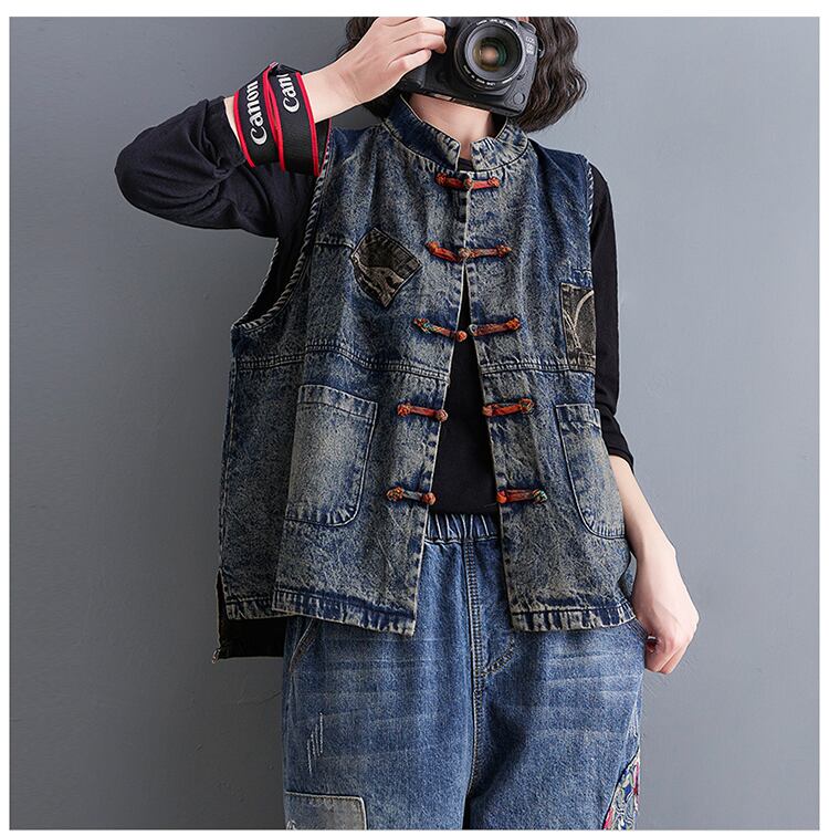 レトロなエスニックスタイルのディスクバックルベスト2021新しい春と秋の女性のアウターウェアタイドベストデニムアウタールーズチョッキ スプリング 春物 オータム 秋物 TB2-8 TB2-815415730260