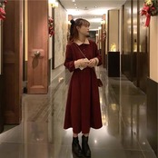 2020年秋冬プラスサイズ年齢縮小レトロボトミングロングスカート女性太ったお姉さんは薄手の気質シャツスカート隠しミートドレス 大きめサイズ オータム 秋物 ウィンター 冬物 TB2-10 TB2-1038981427247