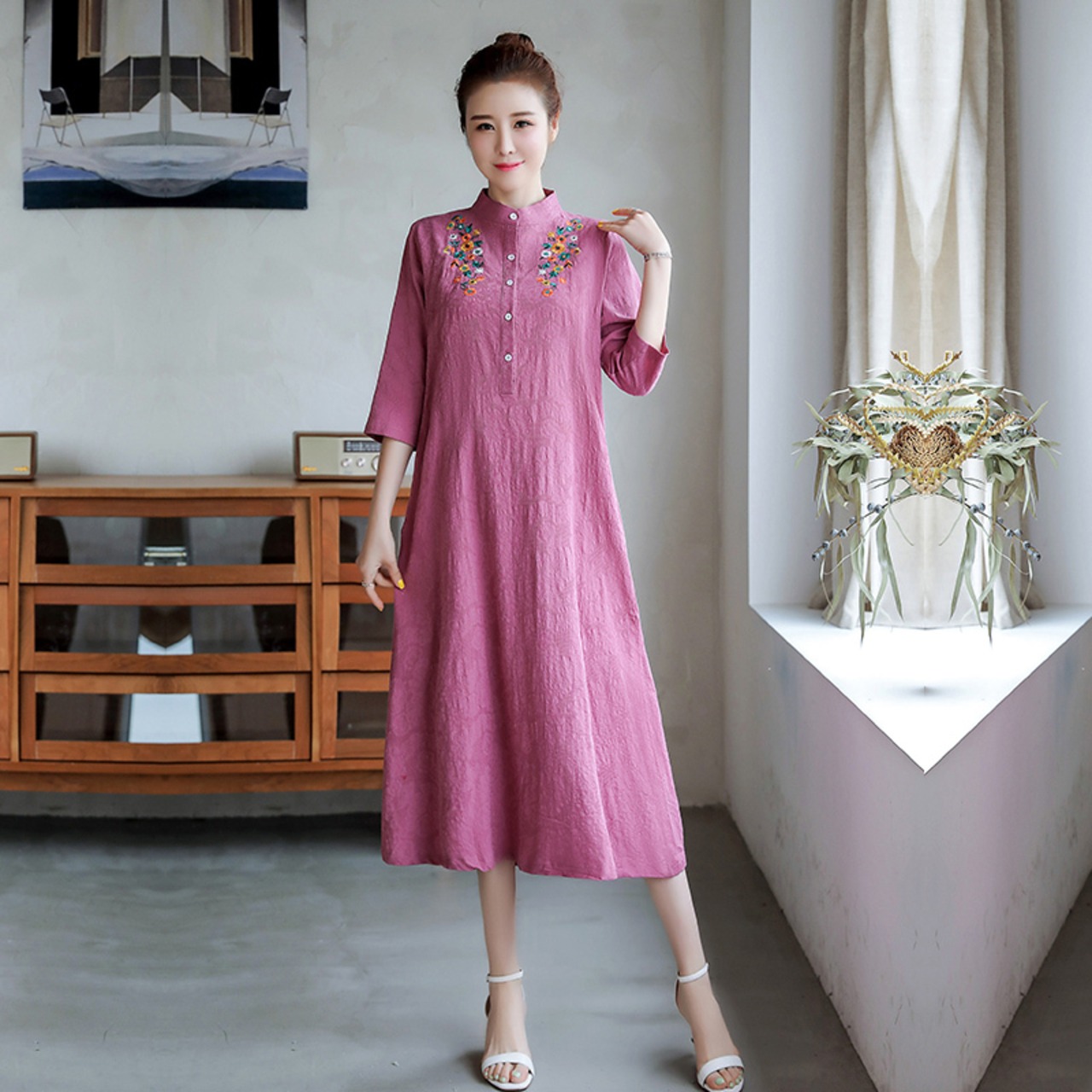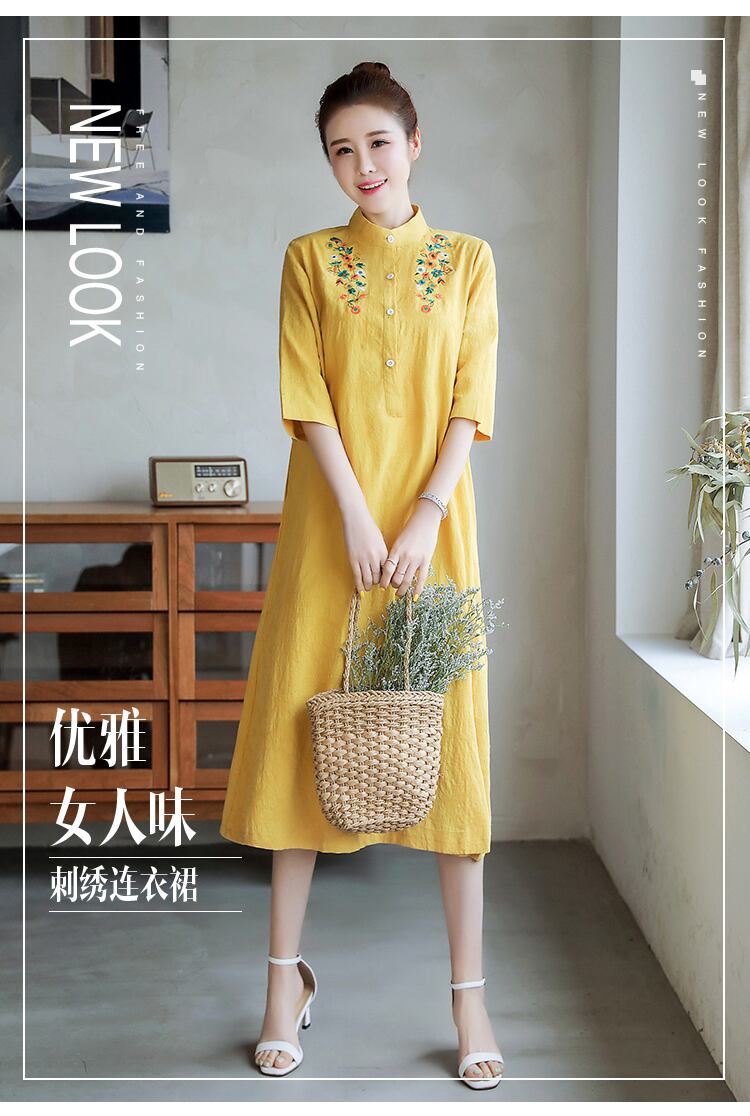 春のエスニック風コットンとリネンのドレス女性の刺繡5点袖ルーズリテラリーロングスカートは薄いレトロなリネンスカートでした 刺繍 スプリング 春物 TB2-12 TB2-1249672553338