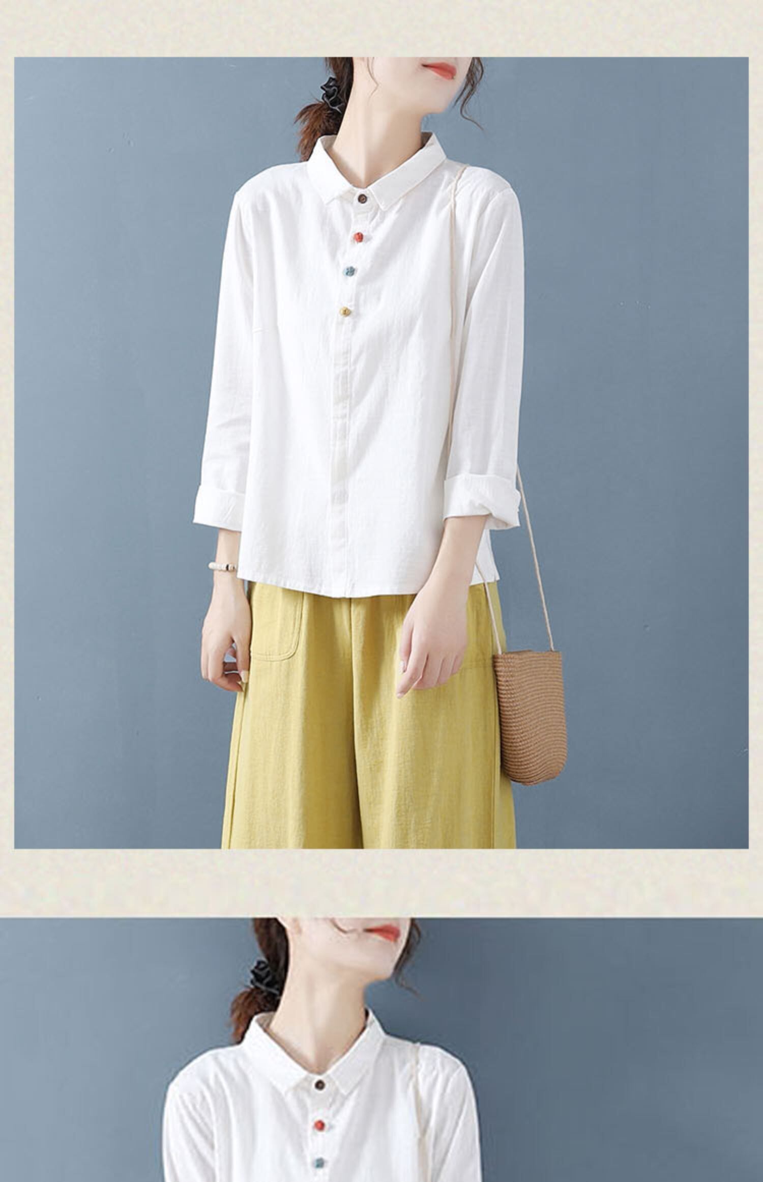 2021年の文学と芸術のレトロな綿とリネンシャツ女性の春と秋の長袖ルーズカジュアルリネンシャツ中国のディスクボタンシャツ ロング コットン スプリング 春物 オータム 秋物 TB2-11 TB2-1162293733111