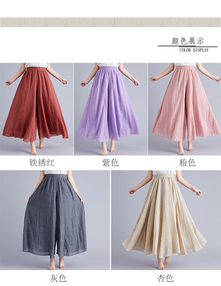 夏の新作コットンとリネンの文芸レトロハーフレングス袴女性の夏のリネン無地ハイウエストイレギュラーラージレングス袴 サマー 夏物 ソリッドカラー TB2-12 TB2-1279426881170