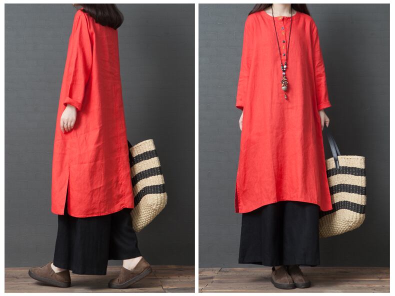 リテラリープラスサイズルーズ刺繍コットンとリネンドレス女性の春の新しいスタイルルーズミドル丈aラインリネンスカート レッド 大きめサイズ スプリング 春物 TB2-12 TB2-1298266411209