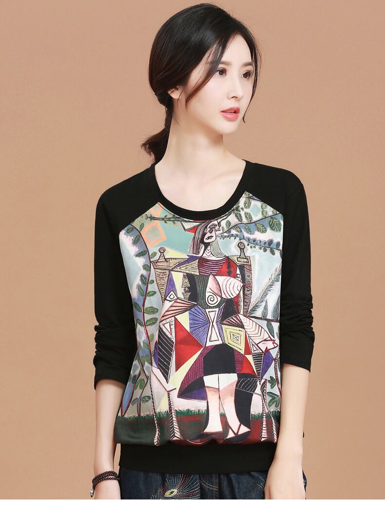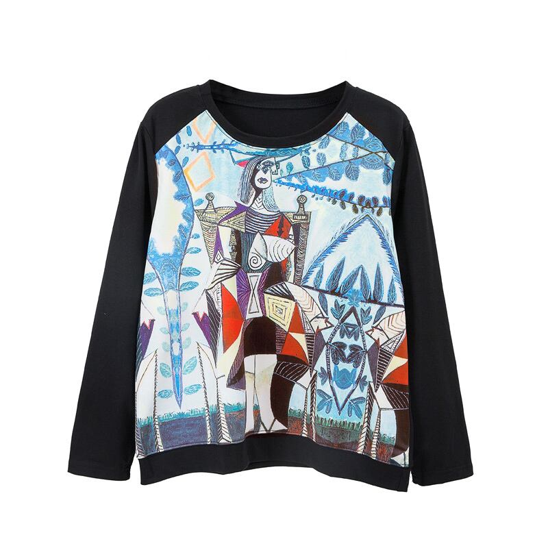 ボトミングトップの200kgラージサイズ長袖プリントブラックTシャツレディース2019新しい秋のルーズコンピオントバージョン ロング 大きめサイズ オータム 秋物 TB2-11 TB2-1169654626344