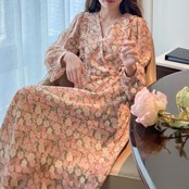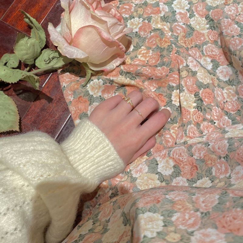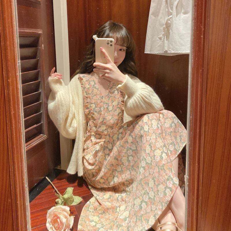2021年春の新しいVネックソフトフローラルドレス、木製の耳付きフレンチニッチレトロ気質シフォンスカート スプリング 春物 花柄 TB2-5 TB2-569905121120