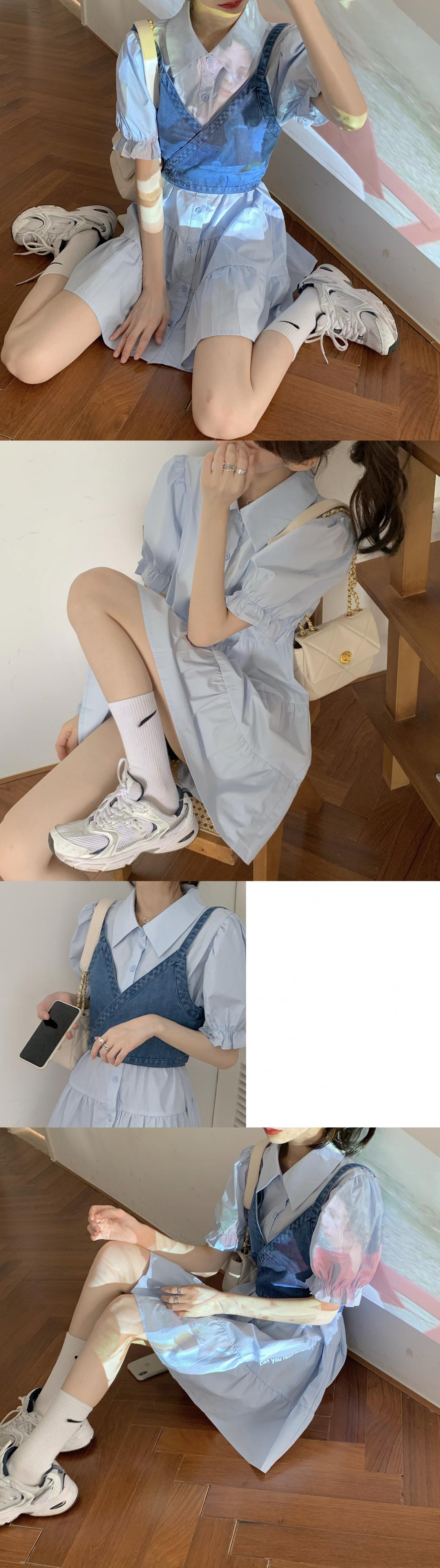 色:白いシャツスカート,青いシャツスカート,ライトブルーデニムストラップ,ダークブルーデニムストラップ