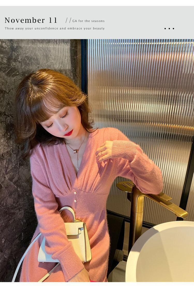 GAピンクの小さな男冬のボトミング新しいフレンチニットドレス2020新しいインナーロングセータースカート ウィンター 冬物 TB2-5 TB2-585963445111